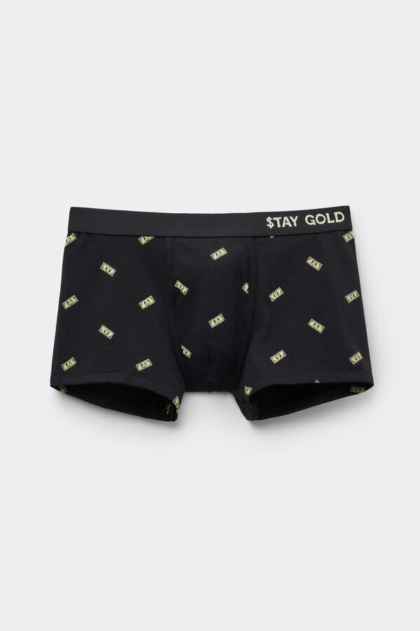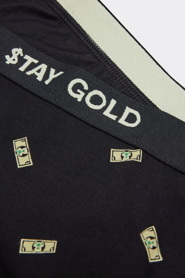 boxeri pentru bărbați din bumbac moale, superior, ușor elastic, cu imprimeu money pe toată suprafața. elastic moale expus, cu imprimeu text „stay gold”.