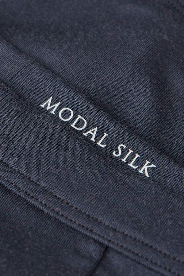 lenjeria noastră intimă modal combină senzația luxoasă a mătăsii cu moliciunea și respirabilitatea unui material bio, creând boxeri mătăsoși care oferă confort și rafinament de neegalat. acești boxeri din mătase pentru bărbați sunt confecționați dintr-un amestec de materiale premium, conceput pentru a oferi o senzație de catifelare și ușurință pe piele. Boxerii din modal au o bandă elastică moale și acoperită, pentru o potrivire sigură, dar delicată, care evită iritațiile. Elasticitatea naturală a țesăturii asigură că acești boxeri se mulează ușor pe corp, permițând în același timp libertate de mișcare. Perfecți pentru uz zilnic sau ocazii speciale, aceștia combină funcționalitatea cu stilul rafinat. Cu un finisaj elegant și rafinat, acești boxeri din mătase sunt la fel de practici pe cât sunt de luxoși. Proprietățile lor de respirabilitate și absorbție a umezelii vă mențin proaspăt pe tot parcursul zilei, în timp ce designul atemporal îi face o adăugire remarcabilă la sertarul dvs. cu lenjerie intimă. Experimentați un confort de neegalat cu acest amestec de modal și mătase. Informații pentru clienți: articolul achiziționat poate avea noul logo Iuman Intimissimi Uomo, dar va avea în continuare aceeași țesătură, croială și detalii de finisare ca cel prezentat pe această pagină.