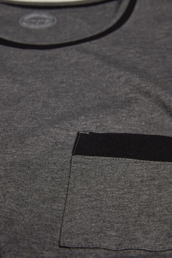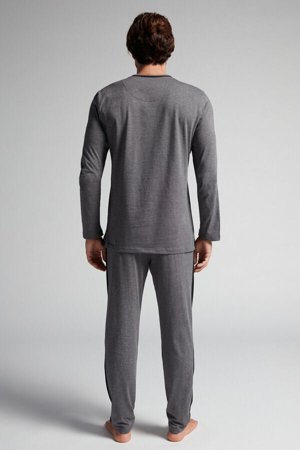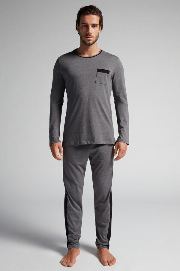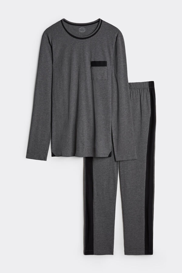 pijamale lungi pentru bărbați din bumbac superior 100% cu inserții din piqué. Bluză cu guler rotund, mâneci lungi și buzunar. Pantaloni lungi cu buzunare laterale și buzunar în spate.
