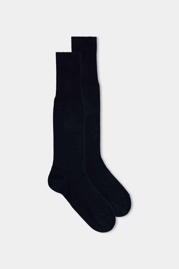 șosete lungi pentru bărbați din bumbac cald, cu partea superioară cu nervuri lungi. firele luxoase le fac moi, dar calde. fabricate în italia.
