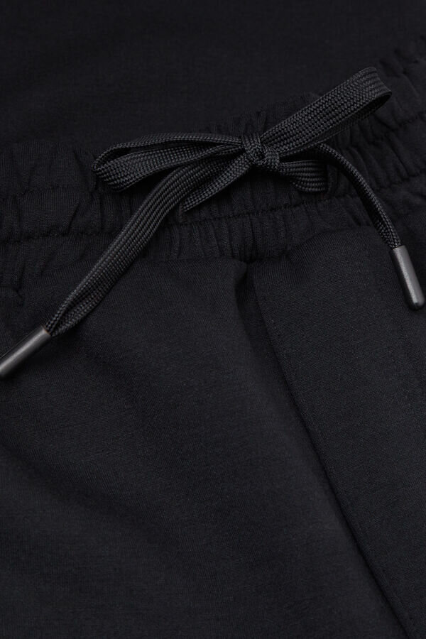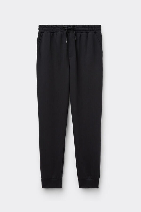 pantaloni lungi din țesătură moale și confortabilă. Confortabili și funcționali, sunt perfecți pentru a fi purtați în timpul liber sau pentru relaxare. Modelul are 185 cm înălțime și poartă mărimea L