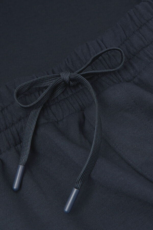 pantaloni lungi din țesătură moale și confortabilă. Confortabili și funcționali, sunt perfecți pentru a fi purtați în timpul liber sau pentru relaxare. Modelul are 185 cm înălțime și poartă mărimea L