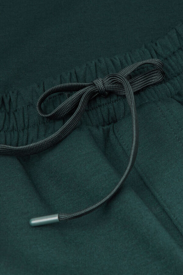 pantaloni lungi din țesătură moale și confortabilă. Confortabili și funcționali, sunt perfecți pentru a fi purtați în timpul liber sau pentru relaxare. Modelul are 185 cm înălțime și poartă mărimea L