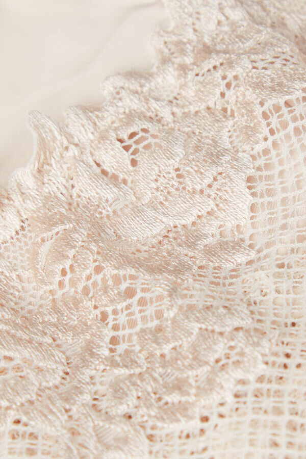 sutien Brazilian cu talie înaltă, confecționat dintr-o dantelă cu volane și o parte inferioară din microfibră moale. în funcție de culoarea aleasă, dantela poate fi de culoare contrastantă sau ton pe ton. părți laterale decupate. inserție interioară din bumbac 100%.