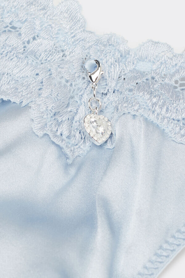 sutien în stilul anilor ’80, fabricat în Brazilia, din satin de mătase moale, ușor elastic, cu dantelă brodată cu motive florale la talie.