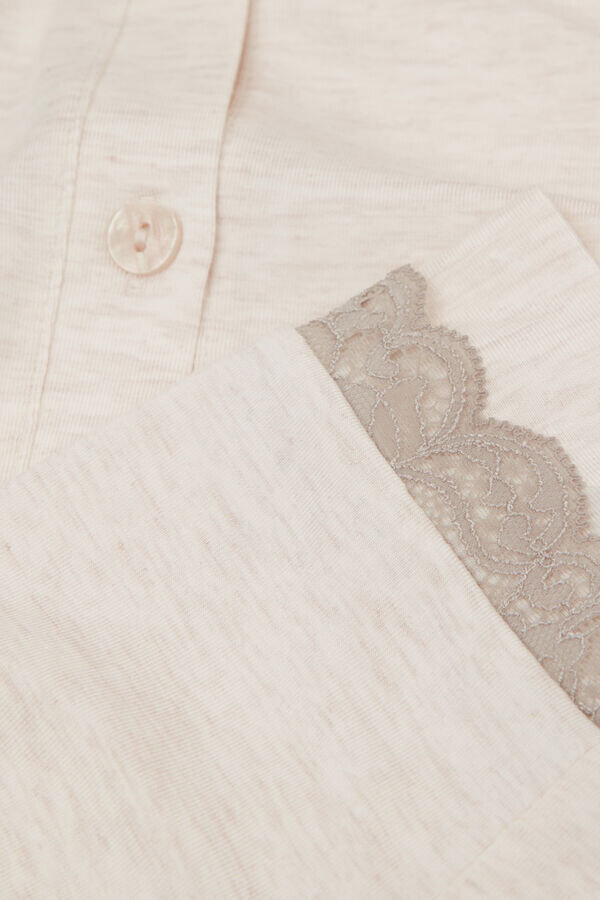Pijamale lungi cu nasturi și bordură din dantelă din modal