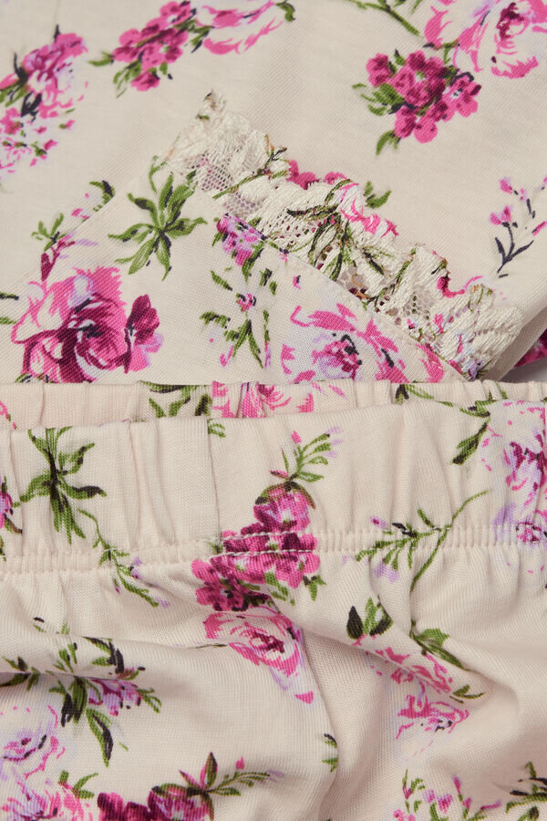 pijamale lungi din bumbac superior moale și confortabil, cu imprimeu floral romantic și colorat. detaliu buzunar pe cămașă, împodobit cu volane din dantelă. 100% bumbac