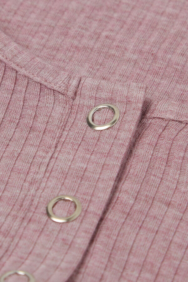 bluză din modal moale cu nervuri, cu detaliu cu nasturi automati la decolteu.