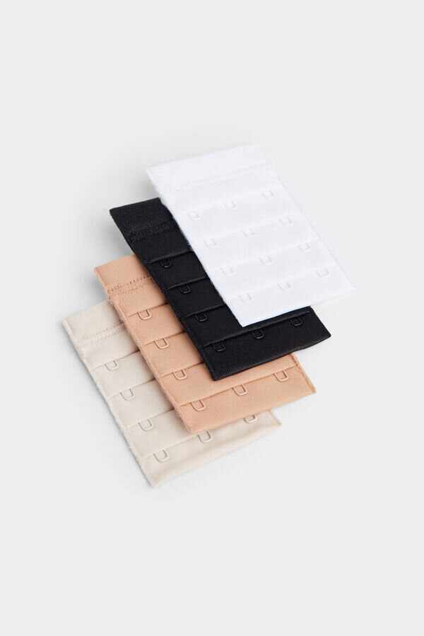 cârlige mari de reglare care vă permit să lungiți banda inferioară a sutienului pentru a satisface nevoile celor care au o circumferință a pieptului mai mare în raport cu bustul. în cutie se află patru piese cu trei cârlige înalte, în patru culori: alb, negru, bej deschis, roz mătăsos. articol disponibil într-o singură mărime.