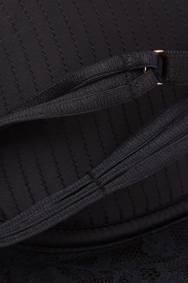sutien balconette Ilenia cu cupe din satin cusute, combinate cu dantelă florală la baza cupelor, pentru un stil feminin cu un gust retro. detaliu senzual la bretele, cu trei bretele și decolteu adânc, creat pentru a evidenția și a accentua bustul și decolteul.