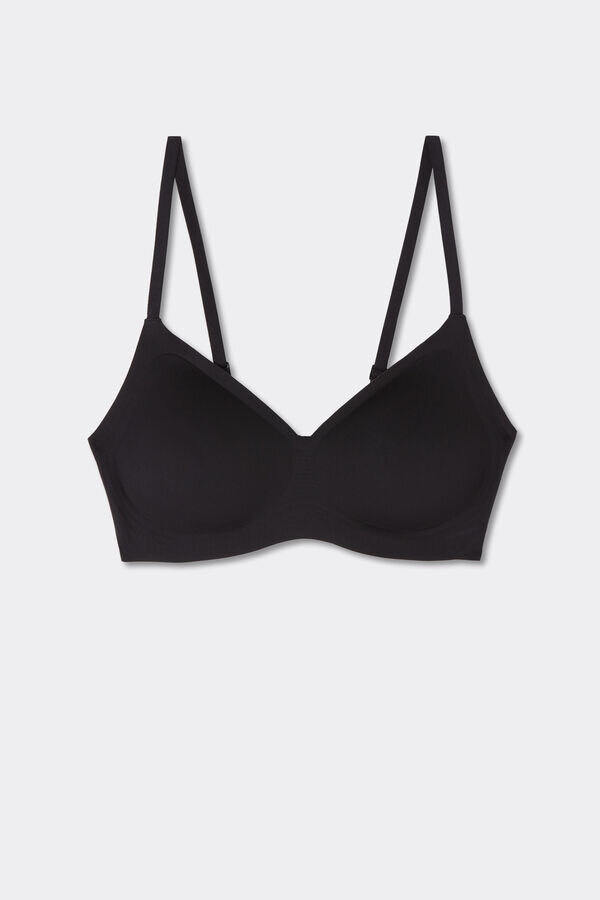 sutien din microfibră moale, fără cusături, pentru un efect invizibil sub haine. are decolteu în v și bretele care se pot încrucișa la spate. pentru un efect de volum mai mare, introduceți căptușeala demi-lune din interiorul cupelor. confortabil și plăcut, susține bustul fără a-l strânge.
