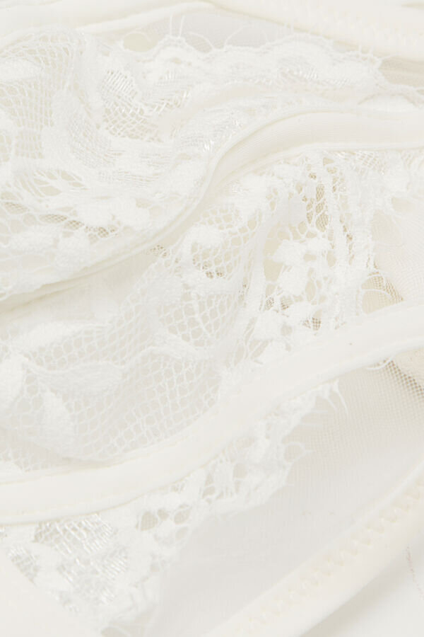 sutien triunghiular care combină eleganța dantelei romantice cu senzualitatea tulului transparent. nervurile de pe cupe conferă un aspect seducător și jucăuș. bordură moale din microfibră.