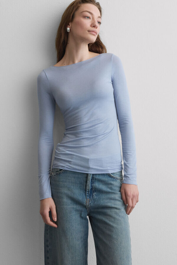 Top ultraleger din modal și cașmir, cu gât în formă de barcă