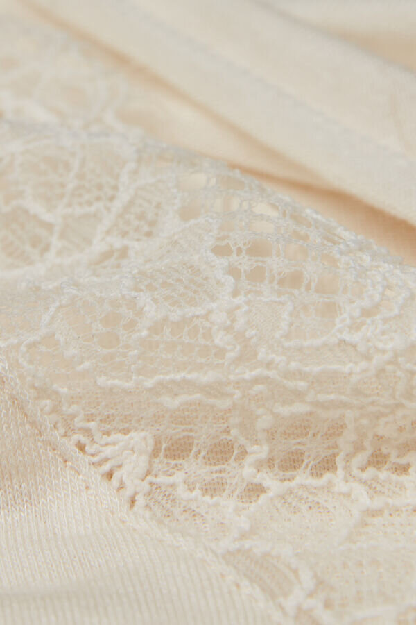 bodysuit dintr-un amestec moale și ultraleger de modal și cașmir, împodobit cu o volană din dantelă la decolteu. cald și confortabil, este perfect pentru a fi purtat singur sau sub o jachetă. efectul ușor transparent îl face foarte feminin.