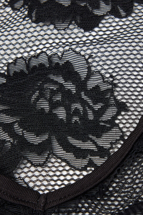 bodysuit din dantelă perforată cu imprimeu floral. feminin și senzual, cu efect de tatuaj datorită transparenței dantelei.