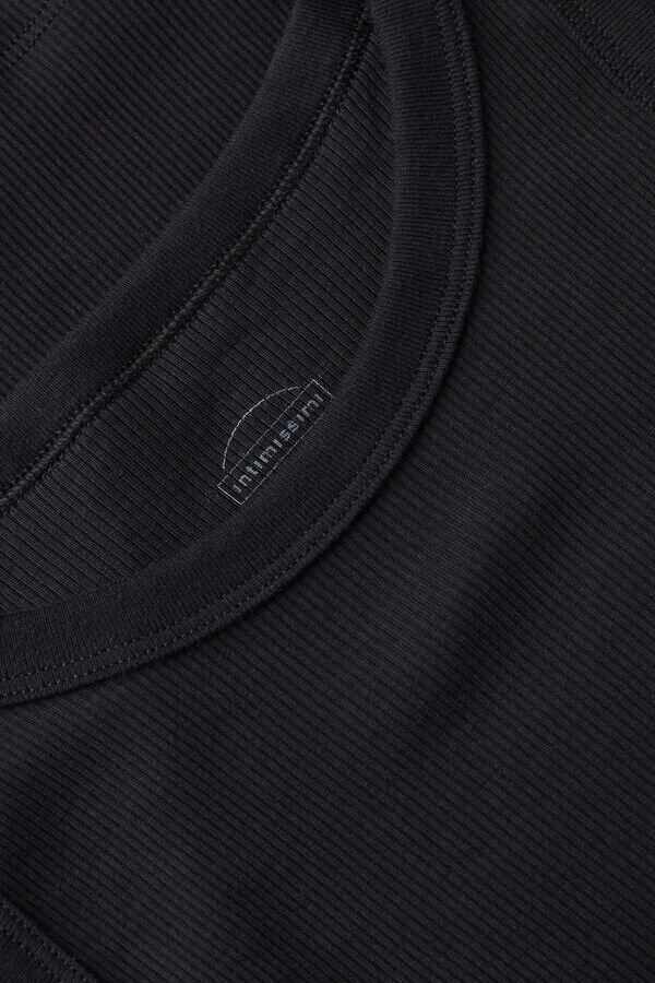 maieu cu guler rotund și spate în formă de U, din bumbac superior cu nervuri. croială ajustată.