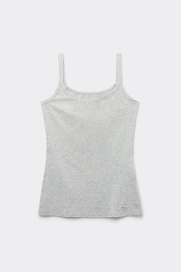 acest top cu bretele subțiri este confecționat dintr-un amestec elastic bogat în bumbac, oferind o senzație de moale și o croială minimalistă, curată. Bretelele fine și decolteul ușor rotunjit conturează o siluetă feminină, care se mulează pe corp pentru un look elegant și modern. Fie că este purtat singur sau sub cămăși și tricotaje, acest top cu bretele subțiri este o piesă de bază versatilă pentru orice ținută. Țesătura oferă o elasticitate subtilă care se mișcă odată cu tine, menținându-și forma pe tot parcursul zilei, fără a se lipi de corp. Finisajele moi la decolteu și la mâneci sporesc confortul, în timp ce structura respirabilă permite circulația aerului și menține țesătura proaspătă pe piele. Disponibil într-o gamă largă de culori, acest top cu bretele subțiri este un articol esențial în garderobă, conceput pentru confortul de zi cu zi și confortul durabil pe tot parcursul anului.